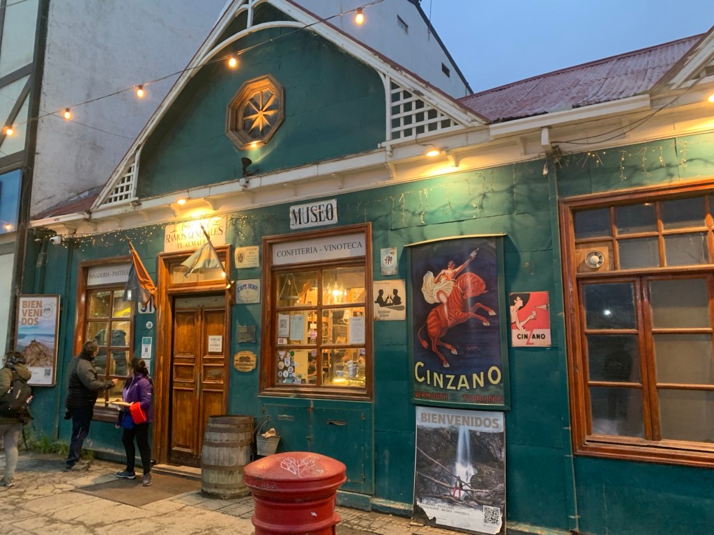 La sera cena al Magazzino di RAMOS GENERALES, un locale particolare ricavato da un vecchio magazzino che costruito nel 1906 fu acquistato da Don José de Salomón nel 1917 dopo che il suo primo proprietario, José del Pino, vi visse lì dal 1913. Sito che per molti anni è stata la casa di approvvigionamento, incontro sociale e culturale, svolgendo un ruolo fondamentale nel processo di costruzione della città di Ushuaia. In questo magazzino circolavano personaggi storici, nativi, incontri sociali, rifugio per i più bisognosi, per gli arrivati dal porto, per i cercatori di oro e di chimere, relazione con la prigione della Fine del Mondo e infiniti aneddoti di personaggi e storie di vita che hanno reso mitico questo luogo.