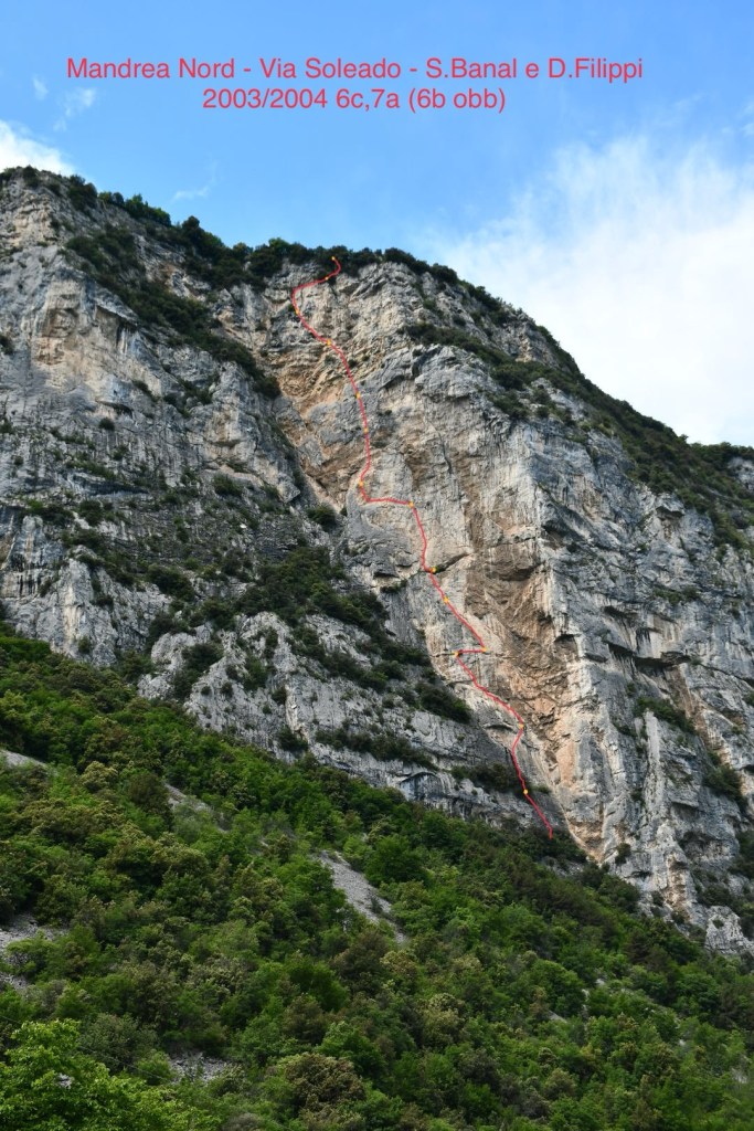 La via è stata aperta da S.Banal e D. Filippi tra il 2003 e il 2004. Le lunghezze sono 14 e la chiodatura è mista ma prevalgono i fix. La roccia è molto bella in generale e le difficoltà continue. La difficoltà massima e di 7a nel quarto tiro, vi sono anche diversi passi di A0. Non tutti i passi sono azzerabili e in alcune relazioni viene riportato l’obbligato 6b. Noi non abbiamo portato friends e vengono consigliati 15 rinvii, il sesto è settimo tiro li abbiamo concatenati. Noi abbiamo fatto l’uscita originale che conclude più serenamente la via.
