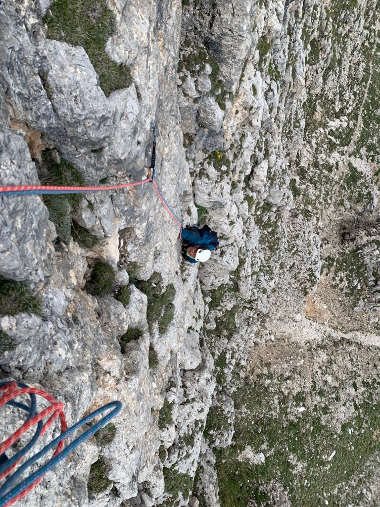 Note: la via è bella e su roccia quasi sempre solida, la discesa secondo me la più consigliata è quella da me testata(vedi discesa), le soste sono tutte a fix e anche lungo i tiri le protezioni sono sufficienti.