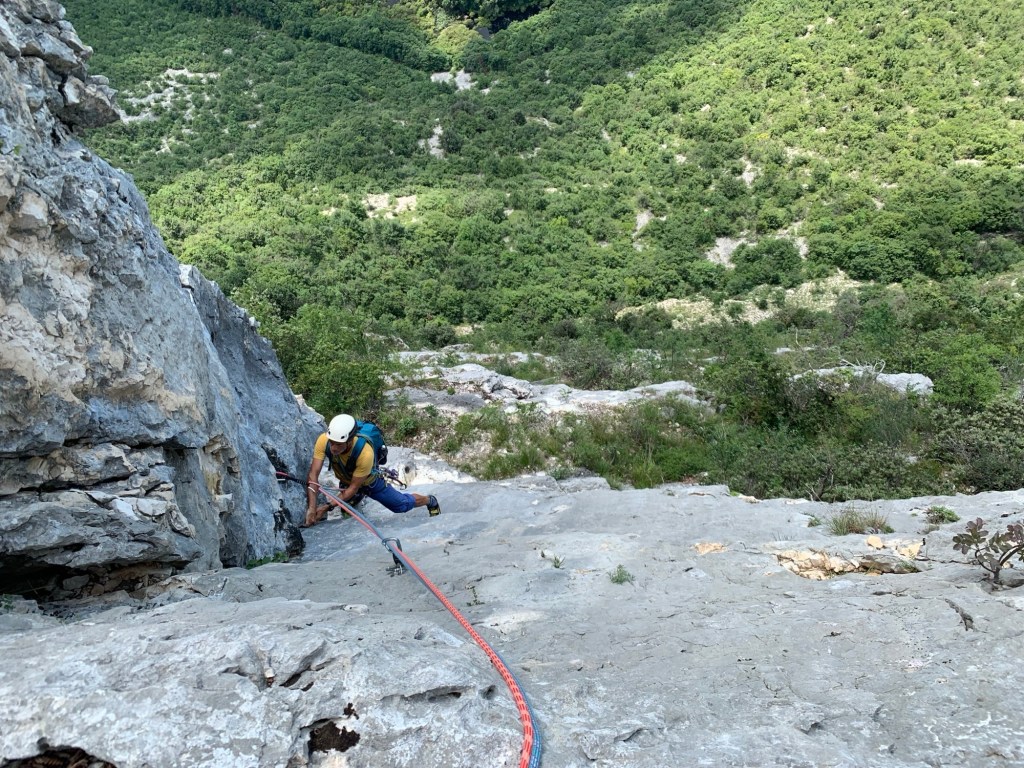 Note: la via a mio parere merita la ripetizione, la chiodatura è buona e non sempre ravvicinata. Il panorama sulla valle di Loppio è impagabile. Noi pur avendo portato tre friends non li abbiamo usati.