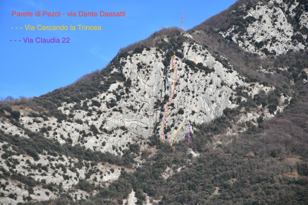 La Via Dante Dassatti è una delle prime vie aperte nel settore, ed è descritta nel libro Vie di Roccia e Grotte dell’Alto Garda, edito dalla S.A.T. Sezione di Arco nel 1983. L’apertura della via risale all’11 agosto 1974, ad opera di Enrico Leonardi e Marco Vecchi. La difficoltà riportata è di 3° e 4° grado, con un passaggio di 5° e l’uso di 5 chiodi. Nel periodo 2018-2020, la via è stata ripulita e rivista da F. Kluckner, A. Farneti e S. Schieder, come documentato in una relazione su arrampicata-arco.com.