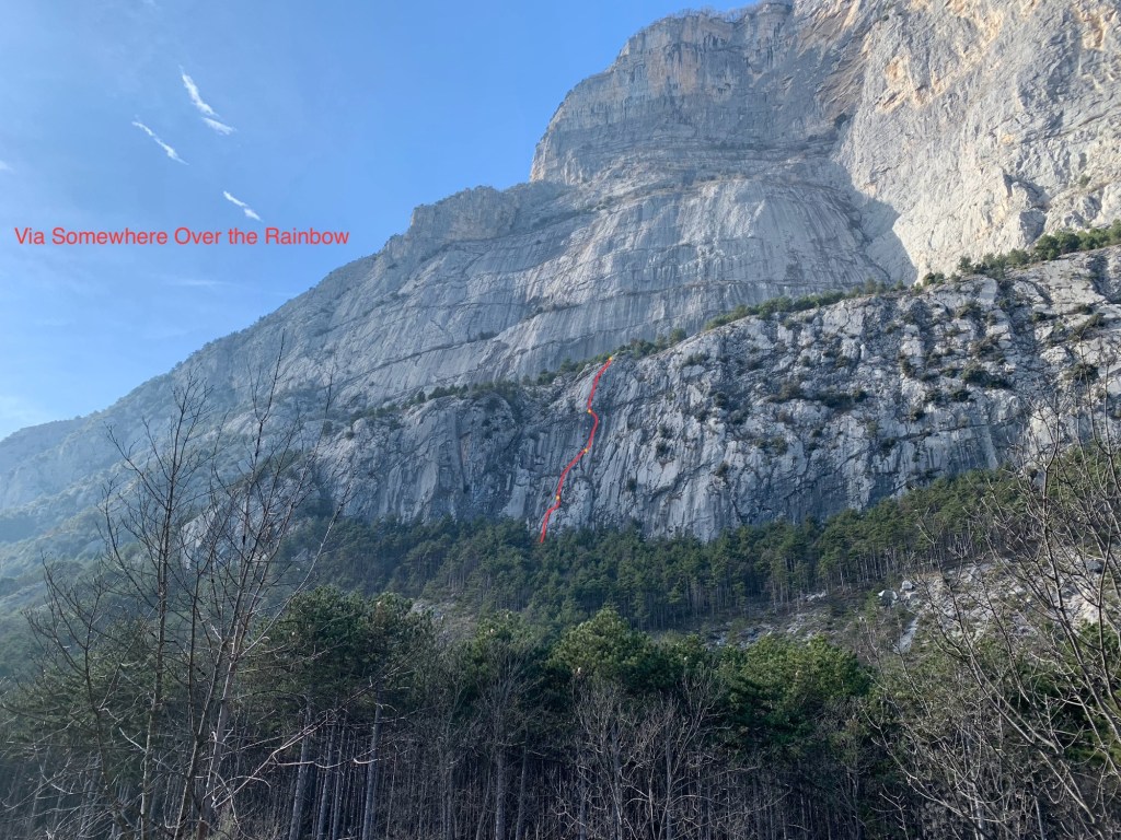 Il nome della via è stato dedicato dall’autore in memoria di due colleghe perite in un incidente stradale (Antonella e Daniela) all’epoca. Le vie di questa parete sembrano dimenticate, ma la loro pulizia sicuramente le riporterà in auge. La via in questione è su ottima roccia, ben attrezzata, e il tiro chiave lo abbiamo trovato un po’ bagnato sulla sinistra, in corrispondenza di una buona presa. Comunque, l’obbligatorio è 6b.