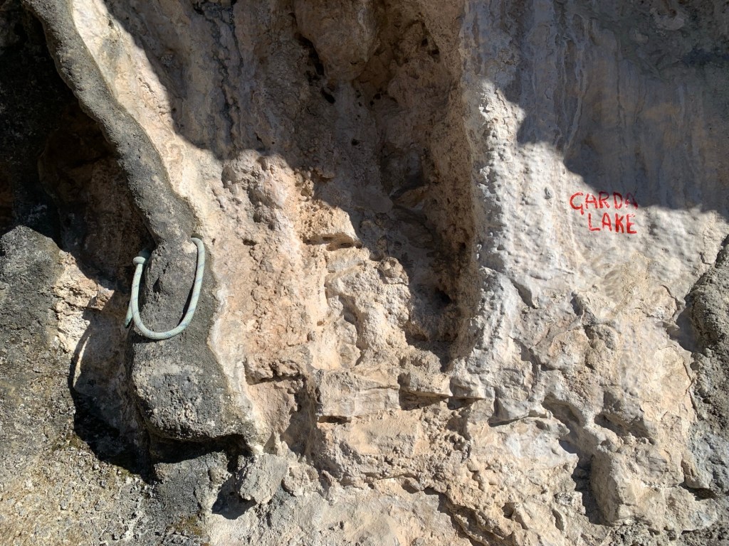 Sosta 6: 27 m, 5 fix, 1 clessidra, difficoltà 6.