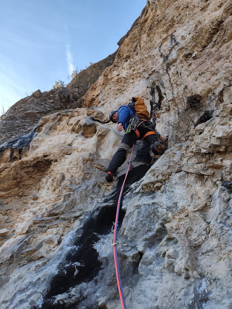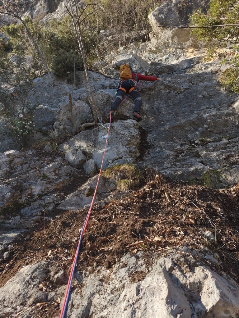La via è inizialmente un po’ sporca di terra, ma con il passaggio dovrebbe ripulirsi. È corta e si presta a essere concatenata con altri itinerari della zona. Utile integrare con protezioni mobili, in particolare cordini per clessidre e alberi.